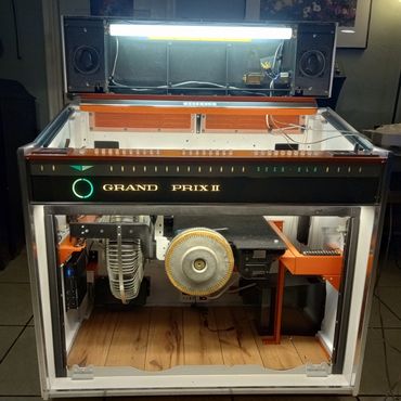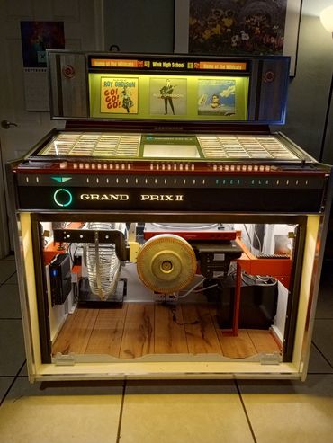 Restoring the 1965 Rockola Grand Prix II to its customized glory was truly a monumental task. From meticulously stripping it down to its bare gold cabinet, every step was a labor of love and dedication. The transformation from a vintage jukebox to a stunning masterpiece is a testament to both craftsmanship and artistry. This isn't merely a jukebox; it's a breathtaking work of art that captures the essence of an era while showcasing the beauty of timeless design.